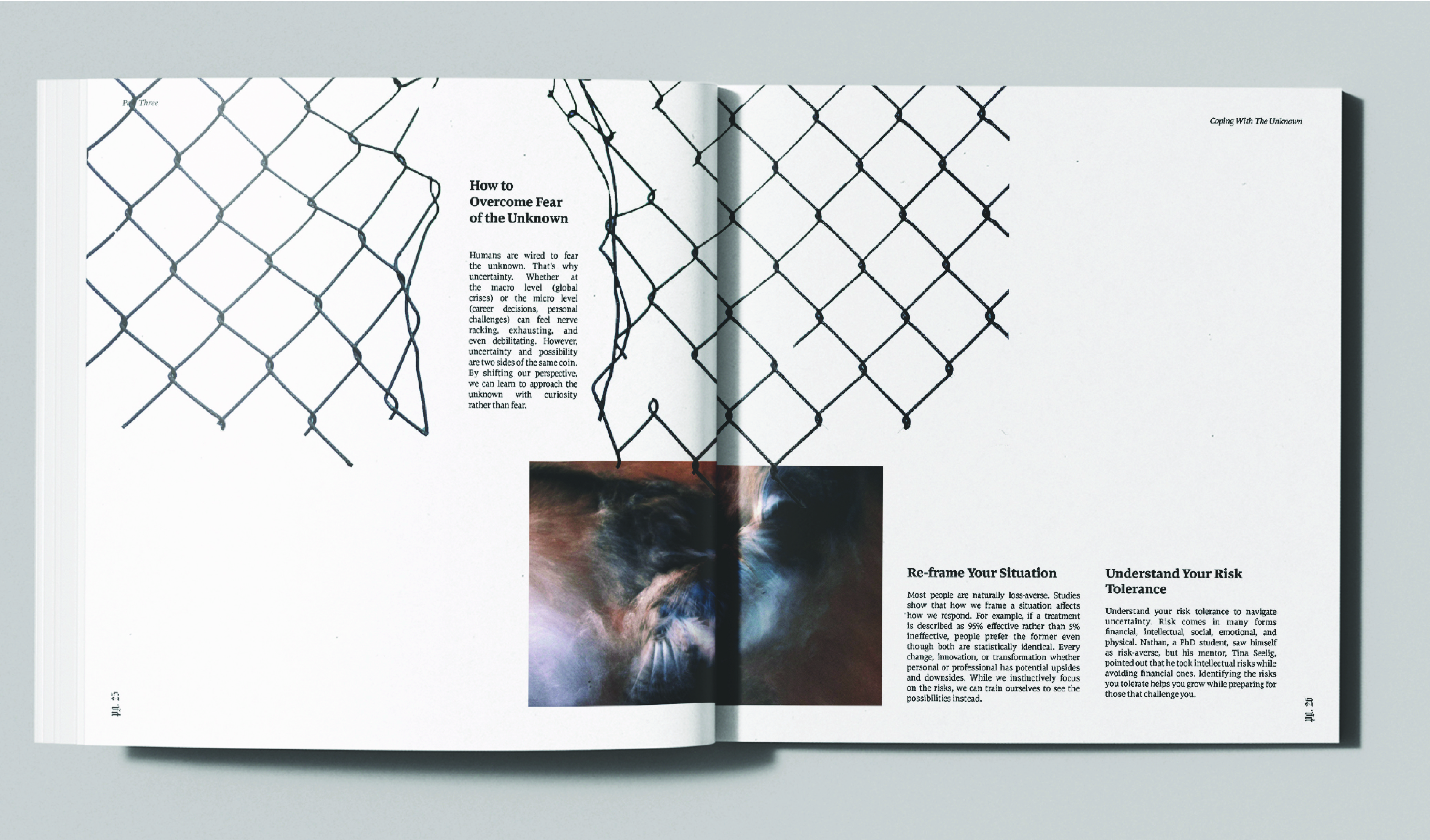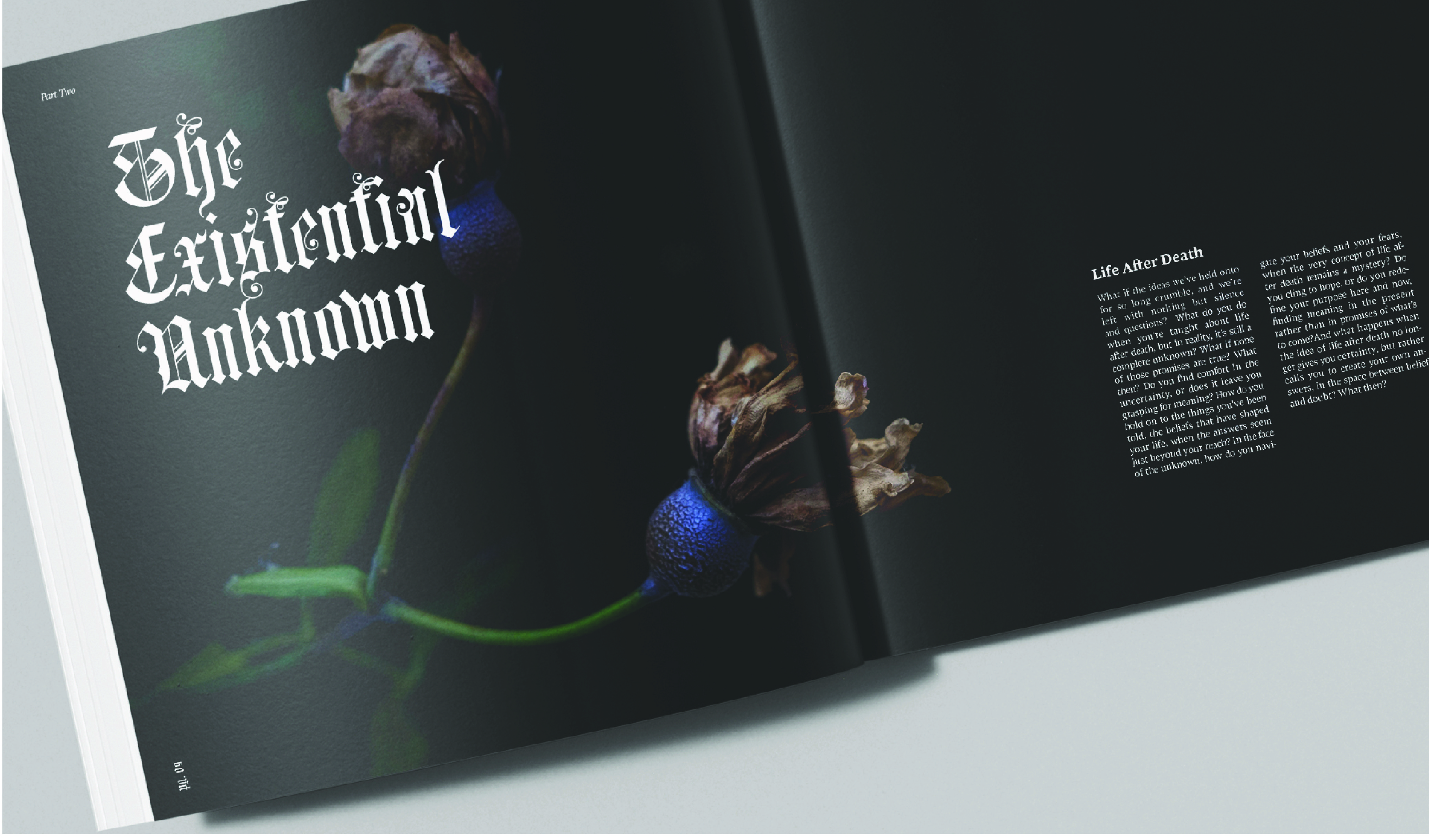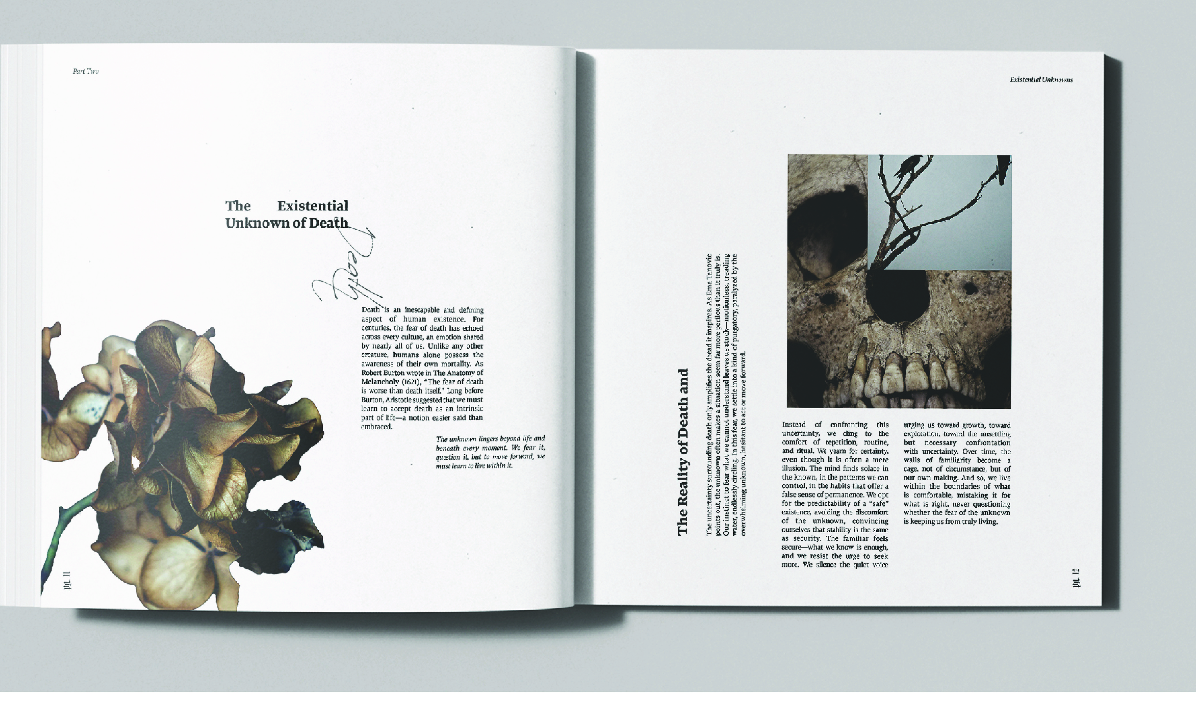 Through expressive typography, visual rhythm, and experimental layouts, the design reflects the tension between structure and ambiguity. By balancing order with unpredictability, the publication invites readers to question what lies beyond what is seen and understood.